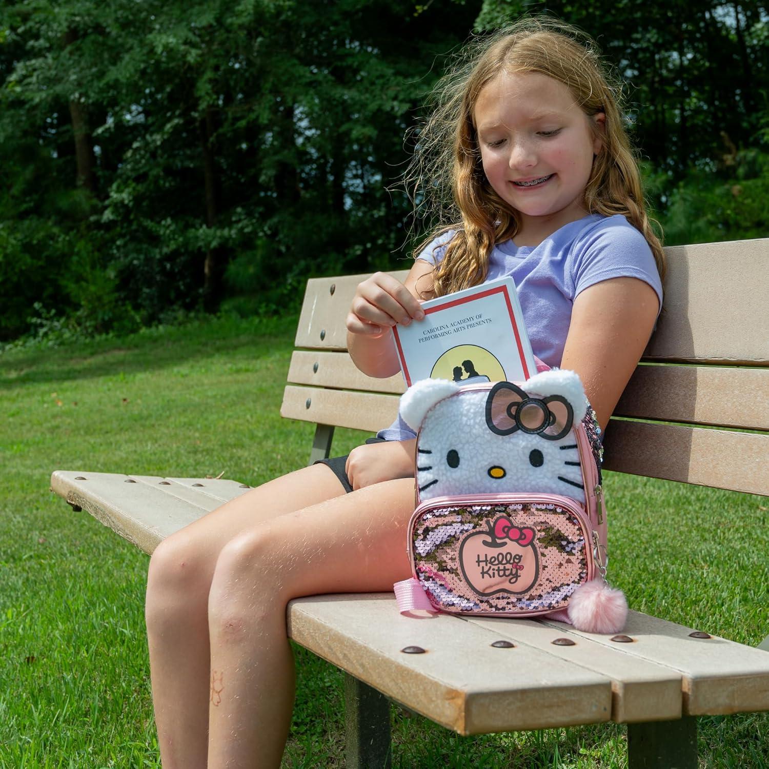 Fun Design: This totally Pink Barbie mini backpack is the perfect accessory for your fashionista. It is made of glitter metallic PU & Pink Sequin materials and features a 3D Heart shaped Barbie logo patch and pompom dangle.