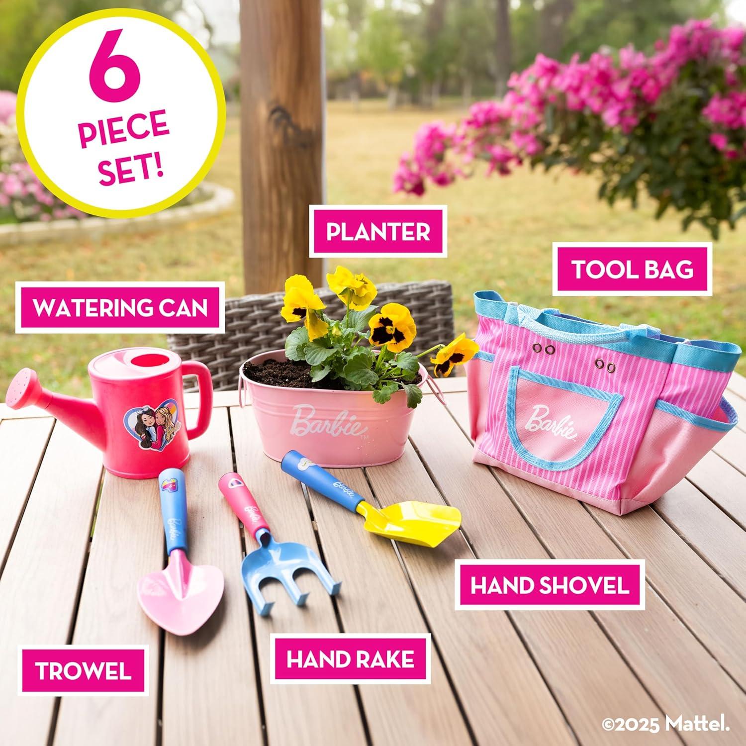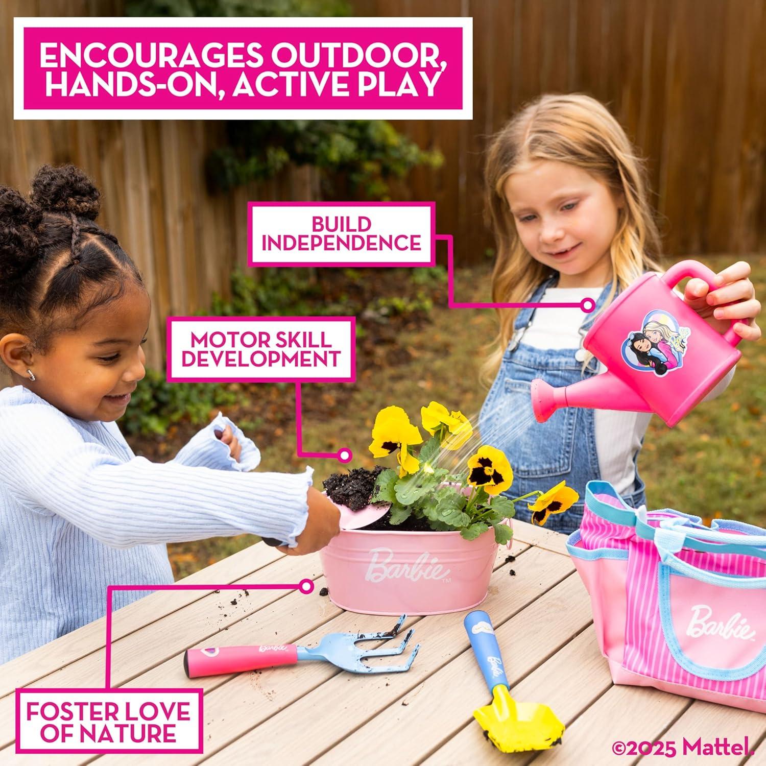 BARBIE INSPIRED: Each piece showcases the iconic Barbie style, adding a glamorous and playful touch to gardening essentials that will make kids excited to use them.