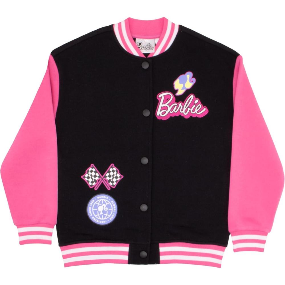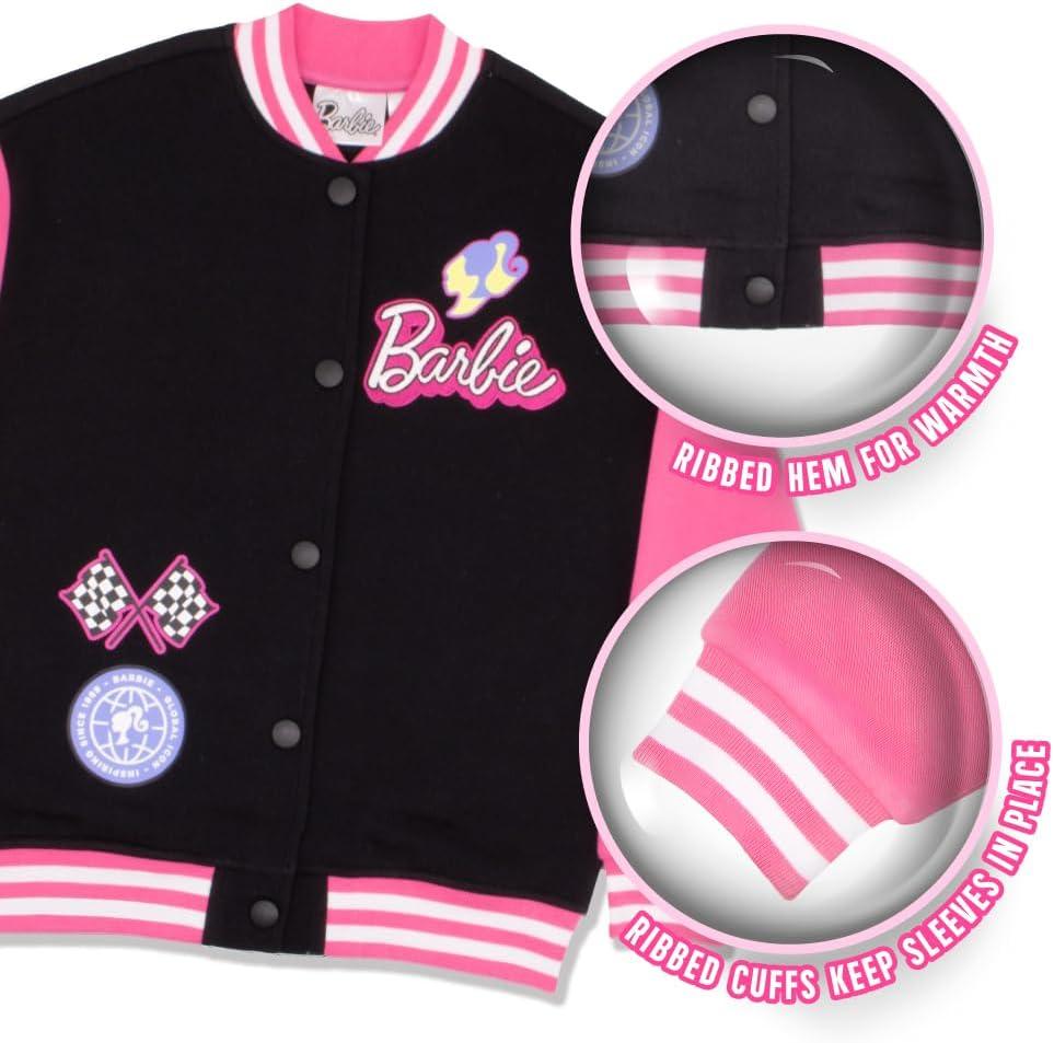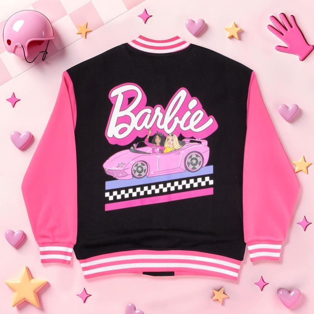 Barbie Girls Varsity Button-Up Bomber Jacket – Fashion Fleece Jacket with Convertible Car Design for Kids