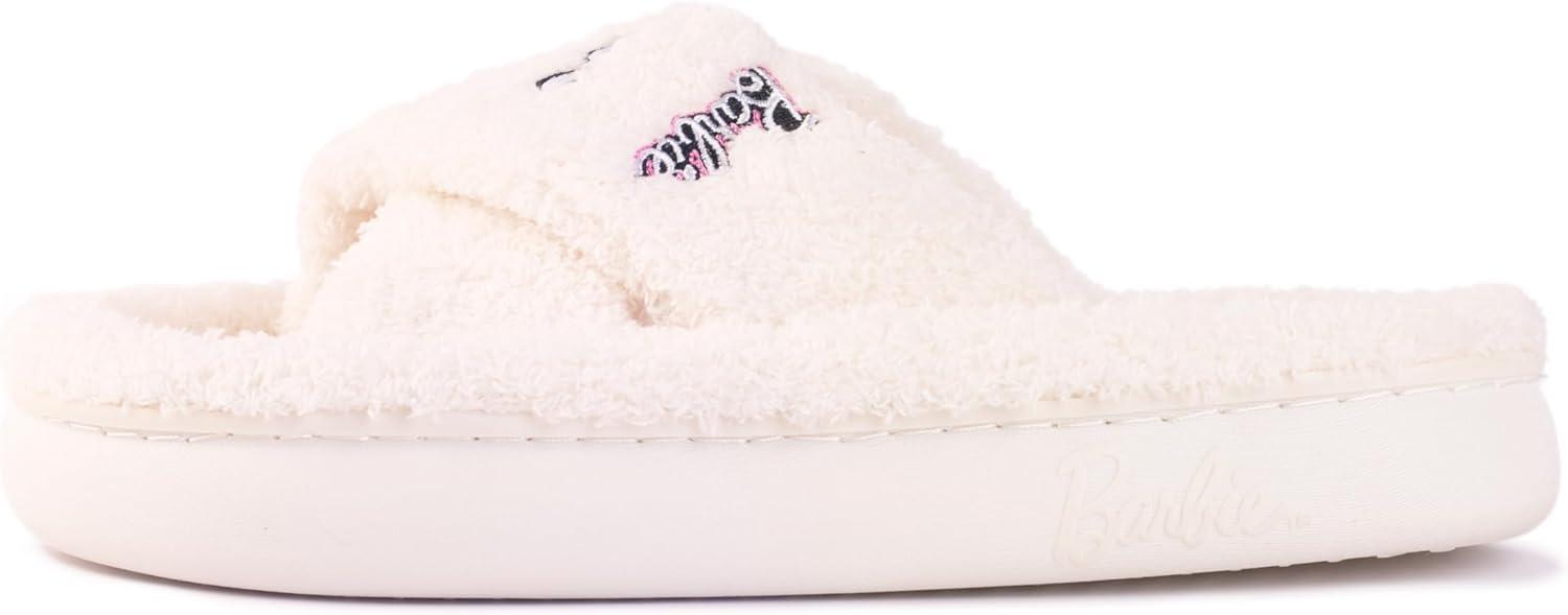SIZING: S = 5-6 SHOE SIZE, M = 6.5-7.5 SHOE SIZE, L = 8-9 SHOE SIZE, XL = 9.5-10.5 SHOE SIZE HI BARBIE!! We know you're a Barbie Girl in a Barbie World, Time to get comfortable in these super soft cozy plush slippers with memory foam soles. With thickened foam insole and flexible bottoms, our cozy slippers for women absorb stress and support feet's natural movement. COZY AND FAUX FUR: The X-Bands are made of cozy terry and the Open Toe Styles are of super soft Faux Fur. These house slippers or house shoes fitted with lightweight slip-resistant rubber soles ensure traction on all floor types and make every step as noiseless as possible. TOP QUALITY EMBROIDERY on each pair gives you plenty of options to choose from. Only breathable, buttery soft fabrics and durable materials are used in our womens bedroom slippers. This makes Barbie slippers resilient to wear and tear and comfy all year round. FINE GIFT FOR EVERY BARBIE IN YOUR LIFE: A pair of novelty scuff slippers for women is always a hit with moms, grandmas and friends. They make great maternity slippers for hospital delivery too if you know someone who's pregnant. DURABLE PRODUCT AND EASY CARE: The durable polyester blended material is machine washable, allowing for easy care and maintenance.