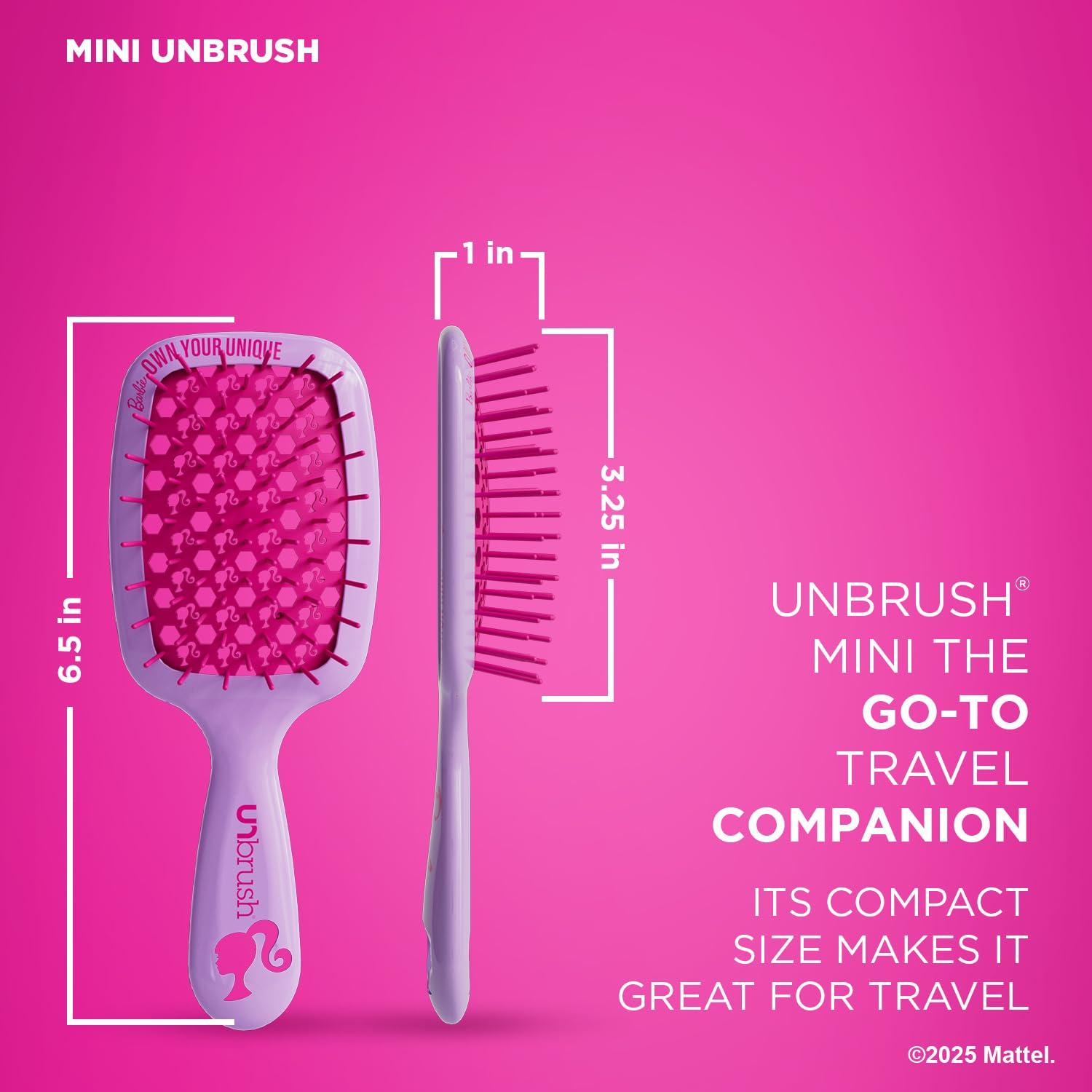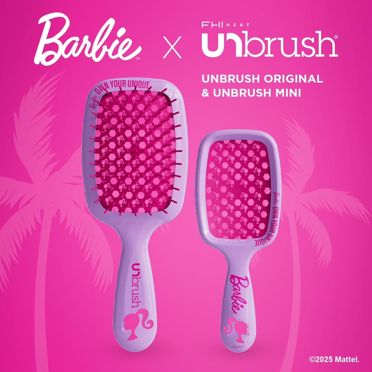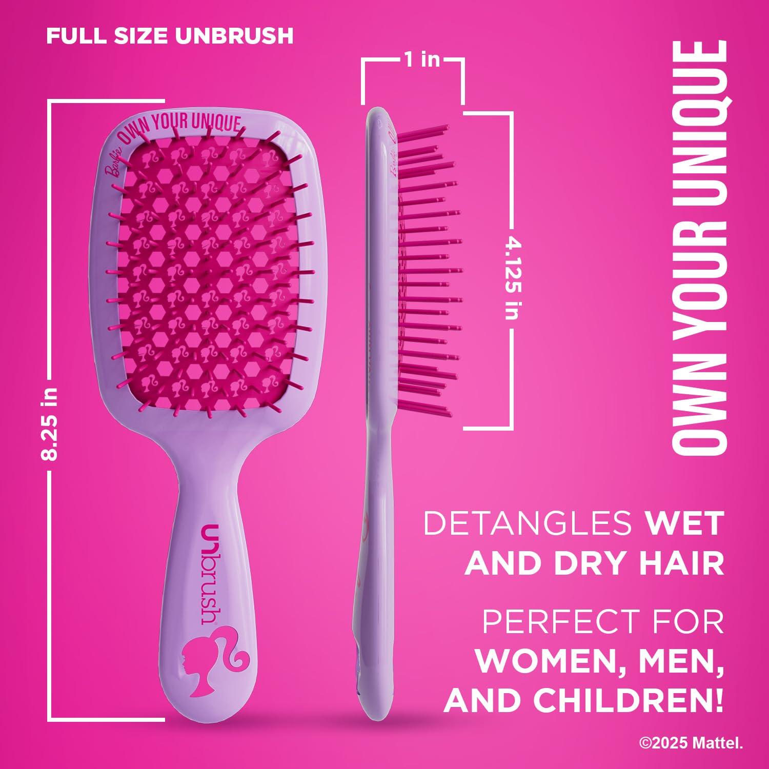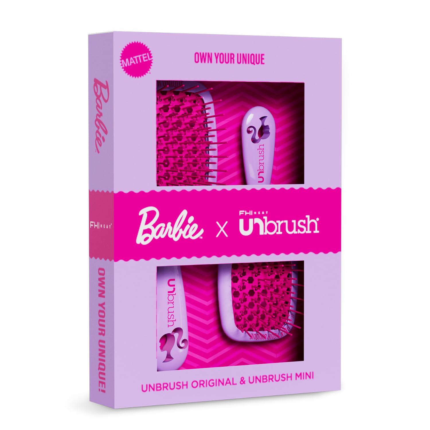 The Barbie Unbrush duo features the UNbrush in the Original and Mini sizes — a dynamic duo that offers a pain-free, gentle detangling experience for all ages. These brushes are perfect for all hair types, reducing breakage and styling time.