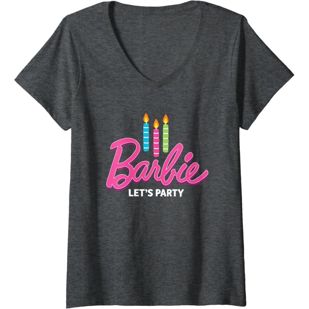 Womens Barbie – Birthday Let’s Party Candles V-Neck T-Shirt(Dark Heather Grey)
