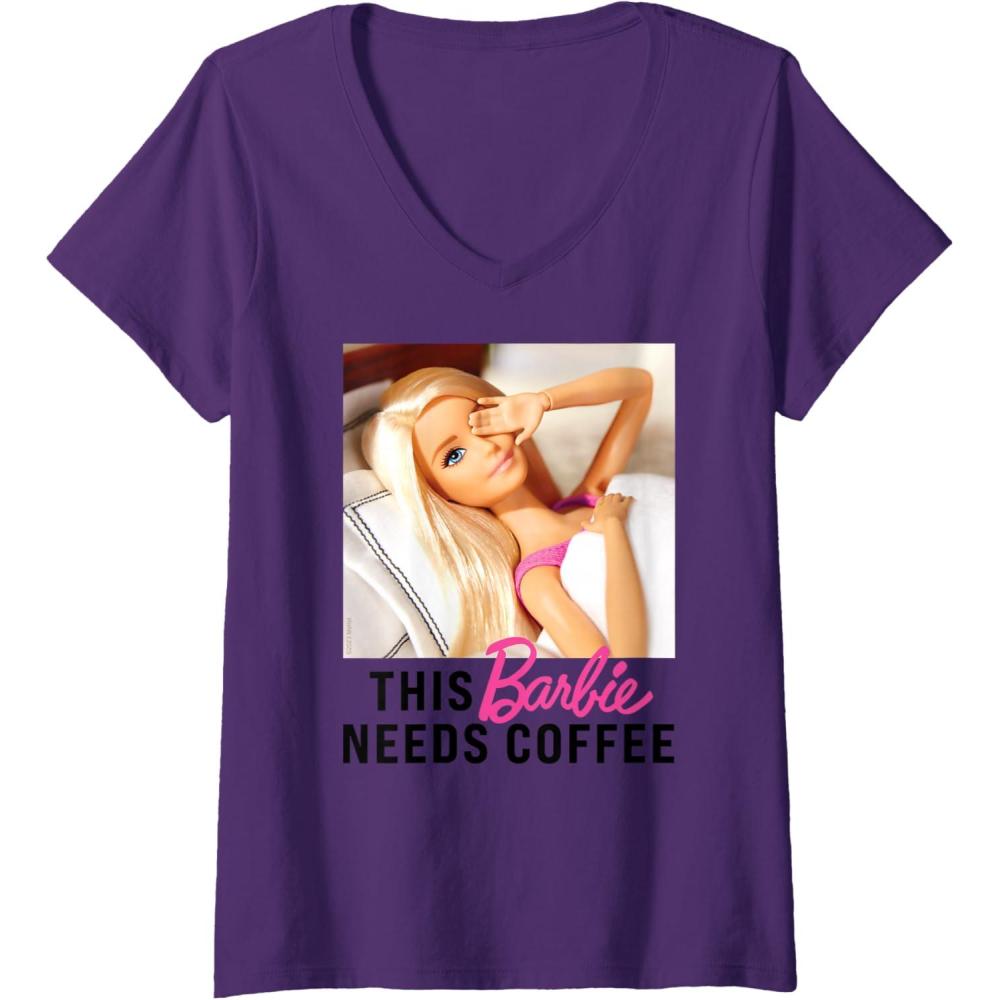 Womens Barbie – This Barbie Needs Coffee V-Neck T-Shirt(Purple)