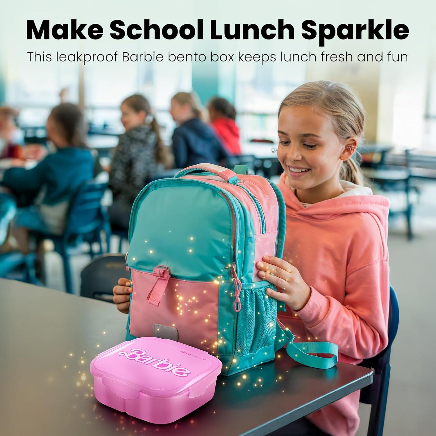 YOOBI X BARBIE BENTO BOX: Introducing the Yoobi X Barbie bento lunch box. It features the classic Barbie logo on the snap lid and will keep your food fresh and safe no matter where you go.