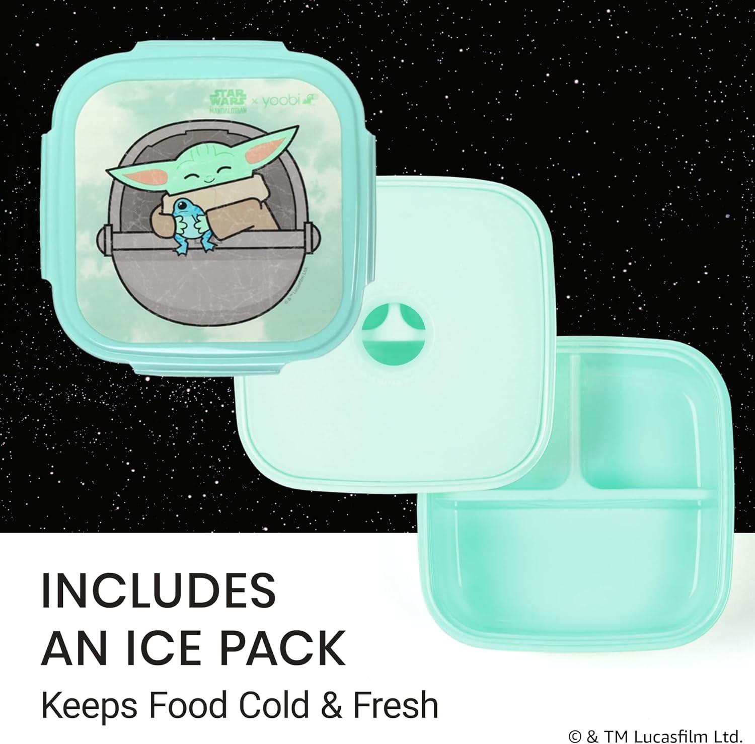 Yoobi Barbie X Pink Bento Box & Ice Pack – 3 Compartment Lunch Box, Dishwasher & Microwave Safe Food & Snack Container for Kids & Tweens – BPA & PVC Free Leakproof(Star Wars The Mandalorian)