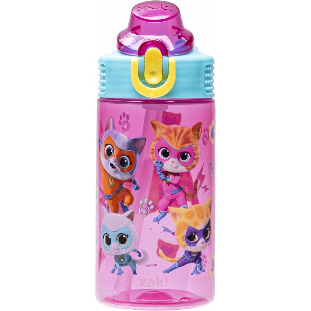 Zak Designs Sage Barbie Water Bottle For School or Travel, 16oz Durable Plastic Water Bottle With Straw, Handle, and Leak-Proof, Pop-Up Spout Cover (Barbie)(SuperKitties (Ginny Sparks Buddy Bitsy))